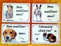 Magnets avec différents messages chiens et chats, grande diversité de races (48 différentes) Mon Meilleur Ami, Pensez à mes croquettes, Coucou, Attention Chat Mouraï, Attention Chat vanne,... 17 pièces avec chevaux , anes , lapin , cochon d'inde , furet plaques en aluminium fabriqué en France 5...