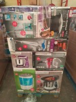 Les palettes sont composées de 80 à 100 produits. Le prix dépends de la quantité achetée. - Prix par palette : 5 palettes: 675 € par palette - 10 palettes: 650 € par palette - 15 palettes: 630 € par palette - 33 palettes: 610 € par palette Produits : Aspirateurs, Cafetières electriques...