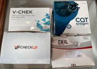 Test Covid Antigène Pro - 0,30 euros hors taxe par unité CheckUp date de fin = 05.2023 = 67 800 unités Vcheck date de fin = 11.2023 = 70 000 unités CAT date de fin = 12.2023 = 120 750 unités CHIL date de fin = 12.2023 = 250 000 unités Il y'a 25 unités dans une boîte = 7.50 euro h...