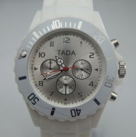montre tada fashion au cadran rond le contour du cadran est serti de cristaux. les chiffres des heures est de taille moyenne. le bracelet est en silicone de tourmaline existe en 12 couleurs. frais de port inclus. a découvrir sur www.grossiste-montre.fr plus d'information 0825...