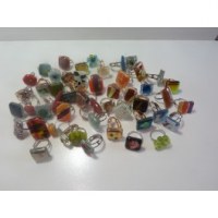 - Lot de 100 bagues fantaisie en verre fusing* - Prix: Pour ce lot le prix à la pièce revient donc à 7,00 € Prix de vente conseillé : entre 15,00 et 25,00 € pièce selon model Certains models ont des feuilles d'argent ou d'or intégré, qui peuvent donc etre vendu un peut plus...