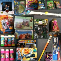 Le carton contient divers livres et jeux/ accessoires pour les enfants : • 10 zaine Maxi bulles • 15 zaine Mini sceaux • 40 taine album photo • 20taine de flûtes • 20taine de tirelire • 20 Tornado speed top • Puzzle • Balle de golf • Cross • Figurine Superman • Jouet Fusil •...