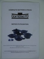 Nous proposons à la vente. Batterie de Cuisine 8pcs de marque Compacto. Empilable et poignée amovible. Compatible tous feux dont induction. 1 poêle 24cm + 1 poignée amovible 1 faitout 24cm 1 Couvercle Sauteuse 1 couvercle en verre 2 poignée silicone 1 passoire silicone 1 saladier...