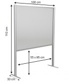 Séparation en plexiglass transparent pour limiter la transmission des virus et bactéries. Plexiglass 100% transparent incassable avec une structure en aluminium élégante assurant une grande robustesse et stabilité en toutes circonstances, toutes installations et toutes utilisations...