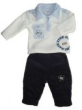 Marque : TOP ONE Pull manches longues, col polo, petite poche devant avec broderie, impression en bas à gauche. Pantalon taille élastique, deux poches avec motif sur la poche gauche. Vendu par lot de 6 pcs Taille: 0-3/3-6/6-9 mois 2 couleur: bleu, marron 35% coton 65% polyester REF ...