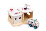 Avec ce superbe poste de police en bois stratifié verni clair et en couleur, des heures de jeu passionnantes sont garanties ! Un garage à porte à 2 battants et un terrain d‘atterrissage sur le toit servent de parking à la voiture et l‘hélicoptère en bois massif partiellement verni...