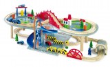 Un voyage à l‘aventure sur 2 niveaux avec ce splendide chemin de fer à 34 rails, 2 ponts, un tunnel et une rampe de descente des trains! A l‘aide d‘une manivelle à main, l‘ascenseur fait monter les trains en continu à l‘étage supérieur constitué d‘une plaque de bois stratifié vernie...