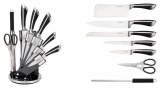 - SET DE COUTEAUX 8 PIECES SUR SOCLE - New Design Modéle Tout Inox - 4 COUTEAUX + COUPERET + AIGUISEUR + CISEAU - Produit spécial REVENDEUR Marque : Kitchen Line - Swiss Line - Royalty Line - Impérial Disponible en Rouge , en Blanc , en Noir et en Violet Set contenant : * Couteau...