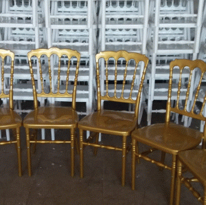 Chaise Napoléon, dos croisé, Trône Noël ou Mariage pour votre activité. Déco argentée, meubles dorés, déco dorée