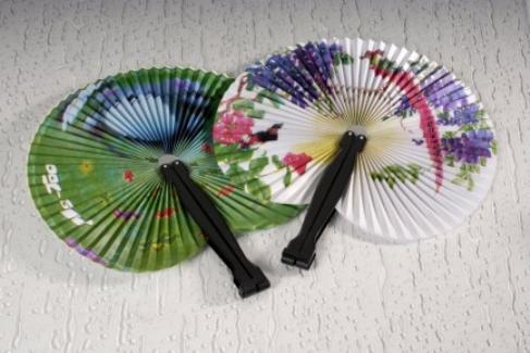 Lot de 60 éventails, 6 modèles diférents. Dimensions : 25 x 23 cm