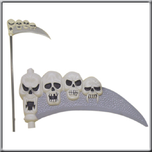 Faux avec décor de 4 têtes de mort blanche + baton en PVC noir