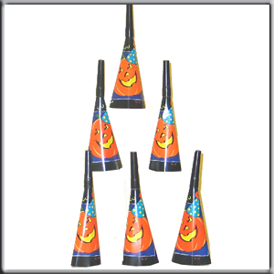 Trompettes cartonnées avec embout plastique - décor tête de citrouille - 6 pièces par sachet transparent