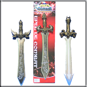 Epée aux manches sculptés - couleur bronze - lames décorées - existe en 3 modèles différents assortis, présenté sur carte
