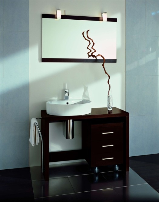 miroir + meuble vasque + vasque + meuble 3 tiroirs à roulette + applique (photo contractuelle)