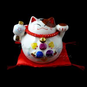 Manekineko chat bonheur traditionnel en porcelaine fin, peinte à la main. pouvant servir également de Tirelire !!