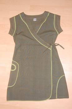 Lot de 9 pièces, tunique cache coeur en coton épais kaki avec liseret vert pomme.