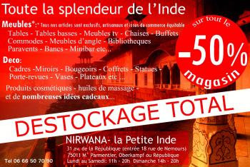 NIRWANA – la Petite Inde vous annonce un déstockage massif avant travaux (- 50 % sur le magasin entier) pour une collection exclusive , artisanale, exotique et issue de commerce équitable.