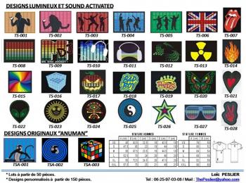 Grâce à une alimentation et un capteur sonore, ces tee-shirts 100% coton reagissent au son et s'animent selon l'intensité de la musique !!!
