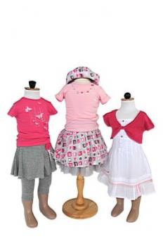 Neufs avec étiquettes, dans l'emballage. Cardigans, jupes,robes, pantalons, shorts, t-shirts (en fibre de bambou), chaussette. Les silhouettes complètes.