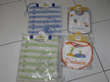 SERVIETTES 100 % COTON à partir de: Gant coloris assortis coton = 0,25€ pièce Serviette 100 % coton 30 x 50 cm = 0,37€ pièce Serviette 100 % coton 40 x 60 cm = 0,70€ pièce Torchon 50 x 70 cm = 0,50€ pièce Serviette 100 % coton 500 gr/m² 50 x 100 cm = 1,05€ pièce Drap de Bain 100 % coton 500 gr/m² 70 x 140 cm = 2.10€ pièce Drap de Bain 100 % coton 500 gr/m² 100 x 150 cm = 3,40€ pièce Maxi drap de Bain 100 % coton 500 gr/m² 100 x 200cm = 4,40€ pièce Peignoir Adulte Col Châle 100...
