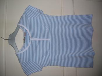 Tee-shirt tunique à rayures blanches et bleues rappelant le style marin