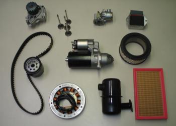 Exemple de pièces : démarreurs, bobines allumage, alternateurs, carburateurs, filtres (air, huile, gasoil) injecteurs, courroies, pompes, thermostats, segments, coussinets, régulateurs, distribution ...