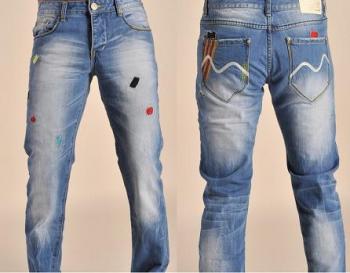 propose des Jeans homme sympa, délavé et touches de couleurs