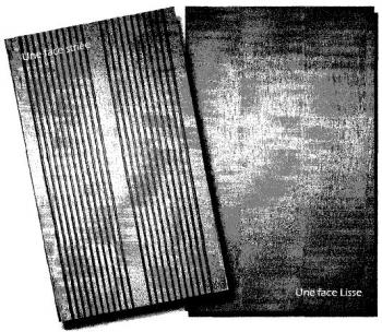 Constitution de 60% de fibre de bambou/bois, 30% Polyéthylène haute densité et 10% d'adjuvants. Les lames sont pleines densité de 1264 kg/m3 (beaucoup plus fiables dans le temps) dimensions 22x140x2900mm système clipsable.