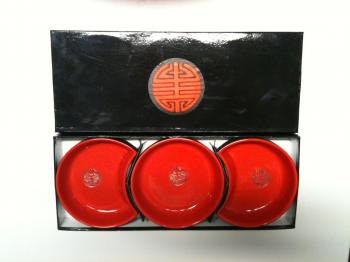 A vendre lot de Coupelle en céramique type asiatique rouge et noir.