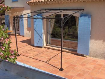 Lots de pergolas en fer forgé, murales et traitées contre l'oxydation (revêtement époxy) ; dimensions : 3 X 2.3 m (hauteur devant: 2.1m et au mur: 2.5 m) ; chaque colis (2) de pergola est protégé dans des cartons ; chaque lot dispose d'une notice de montage, visserie et outils.