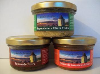 Assortiments de tapenade trois saveurs différentes, produits Provençal "Le moulin du Pastre".