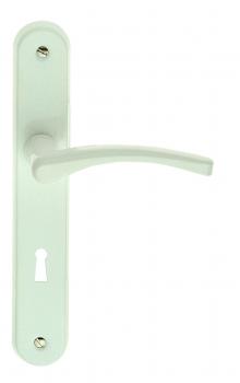 Paire de poignées de porte sur plaque modèle EVA en Aluminium blanc, normes Belgique