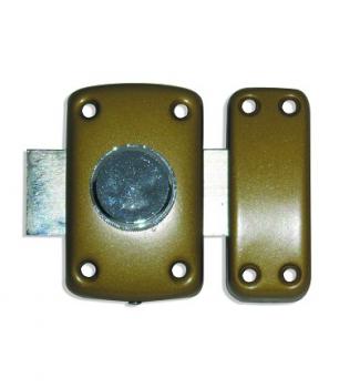 Finition bronzé, livré avec 1 gâche pour huisserie bois, 1 rosace (ou entrée) et vis de fixation