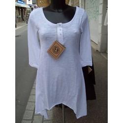 Professionnel de l'habillement vend 1 lot de tuniques Femme, 100% coton, coloris blanc, manches 3/4, coupe asymétrique dans le bas, marque "The Earth Collection".