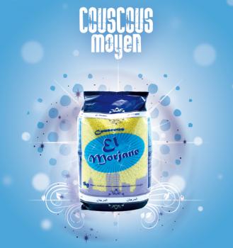 Couscous El Morjane à base de blé dur de qualité superieure en sachet de 1 Kg, palette de 48 cartons de 16 sachets donc 768 Kg par palette. vente en gros par 10 palettes minimum, palette Europe. Prix livré sur toute l'europe. .