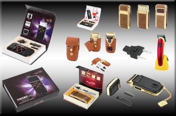 Superbes coffrets de rasoirs rechargeables directement sur secteur (220V) avec tondeuse à moustache, lame de rechange et brosse.
