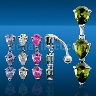 Ici, nous avons un bijou ventre en forme de banane avec uhe pierre cubique de zirconia accrochée dessous.