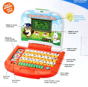 Ordinateur portable interactif - 6 activités pour reconnaitre les lettres, chiffres, formes, apprendre l'orthographe... - Grand écran LCD avec animation graphiques amusantes - Poignée pour transport - Garçon et fille - A partir de 3 ans.