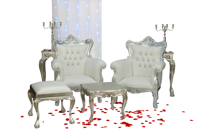 Fauteuil de mariage argenté et simili blanc