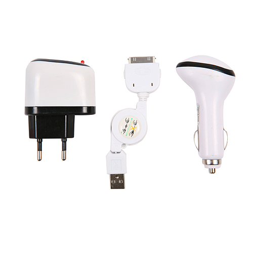 Kit 3 en 1 chargeur secteur et voiture + câble USB