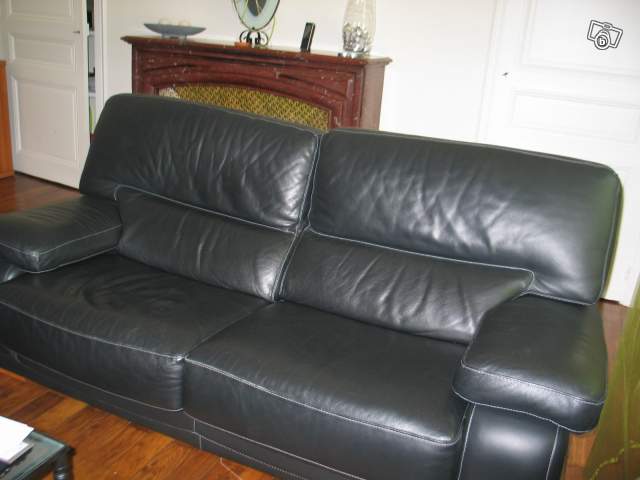 vends CANAPE CUIR VACHETTE NOIR 3 PLACES Dimension 200 x 85 de profondeur