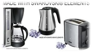 Lot d'électroménagers design sertis d'éléments Swarovski : 1 cafetière, 1 bouilloire et un grille-pain