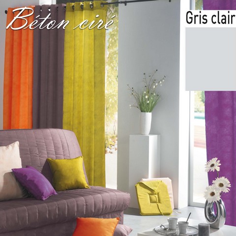 Double Rideau Béton Ciré GRIS CLAIR à Œillets 140 X 260 cm