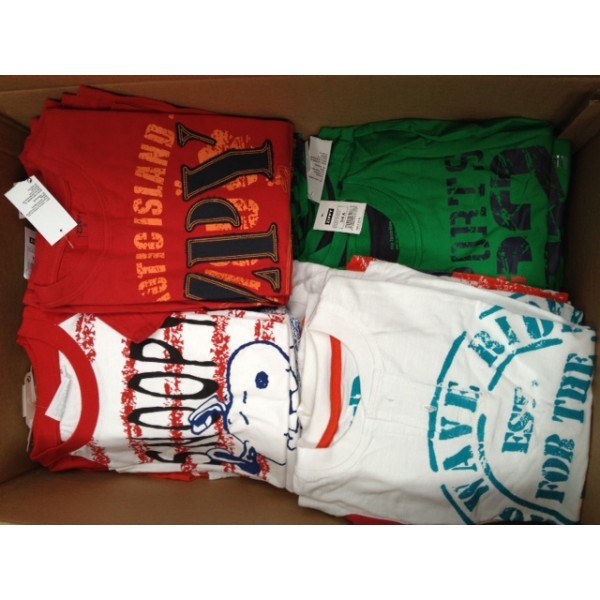 Carton de T-shirt manche courte et débardeur plusieurs modèles dans le carton avec taille assortie.
