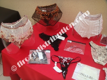 Firoza Distribution vous propose de la belle lingerie de la marque A JOUR Quantité pour 1 lot : 239 pièces (plusieurs modèles et plusieurs couleurs, tailles variées) Prix par pièce : 3€ ht seulment ! Vous pouvez prendre plusieurs lots ... Vous pouvez aussi prendre de plus petits lots... 80 pièces seulement au tarif de 3.50€ ht la pièce soit 280 euros ht le lot de 80 pièces ! Vous pouvez commander sur le site www.firozadistribution.com (livraison ultra rapide) Vous pouvez venir...