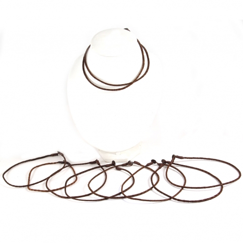 Profitez de ce lot de 10 cordons en cuir marron. Ces colliers fantaisie peuvent avoir une double utilisation : à porter sans pendentif ou avec un pendentif en bois ou en cuir par exemple.