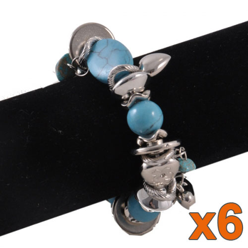 Envie de jolis bracelets fantaisie pour compléter votre collection ? Ces magnifiques bracelets perles et pampilles couleur bleu turquoise plaira beaucoup à vos clients pour son côté chic et tendance.