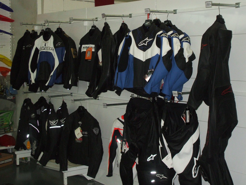 Lot de vêtements moto homme, blousons cuir et textile, pantalons, une cmbinaison cuir. Pour une valeur à la vente de 7911 €.