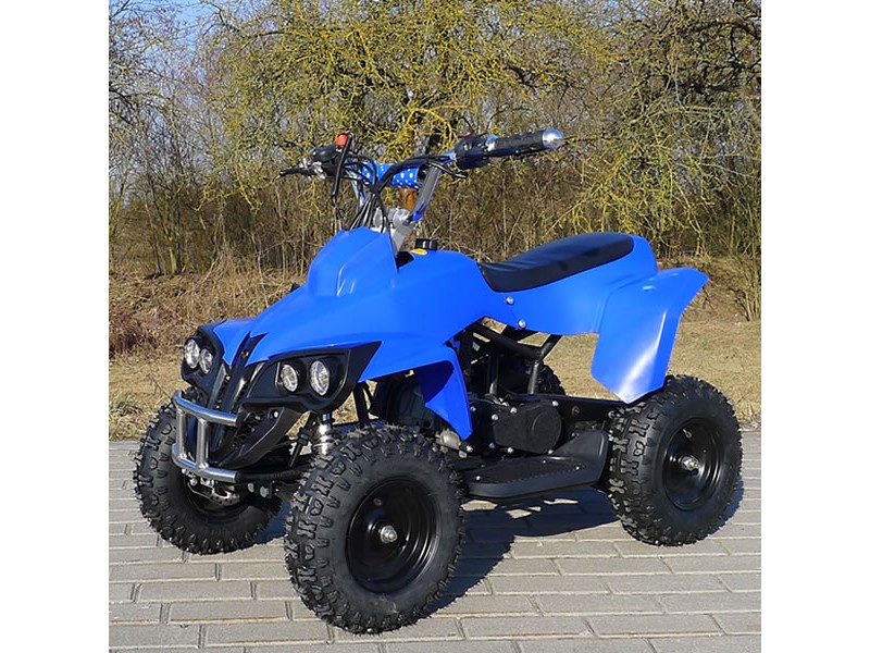 Quad de 49 cm3 Mini Demon avec des pneus cross 6 pouces et une double sortie d'échappement. Il dispose de 3 freins à disque et d'une télécommande de contrôle à distance d'une portée de 120 mètres. Garantie 3 mois pièce moteur Accesible de 5 à 12 ans.