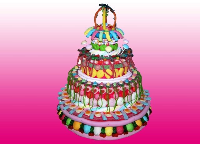 Grossiste en bonbons et grossiste en gâteaux de bonbons, nous vous proposons cette pièce montée de 4 étages, de plus de 500 bonbons !